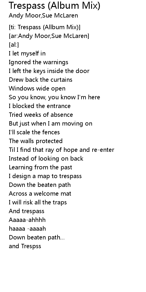 | [02:55.34] | And trespass |