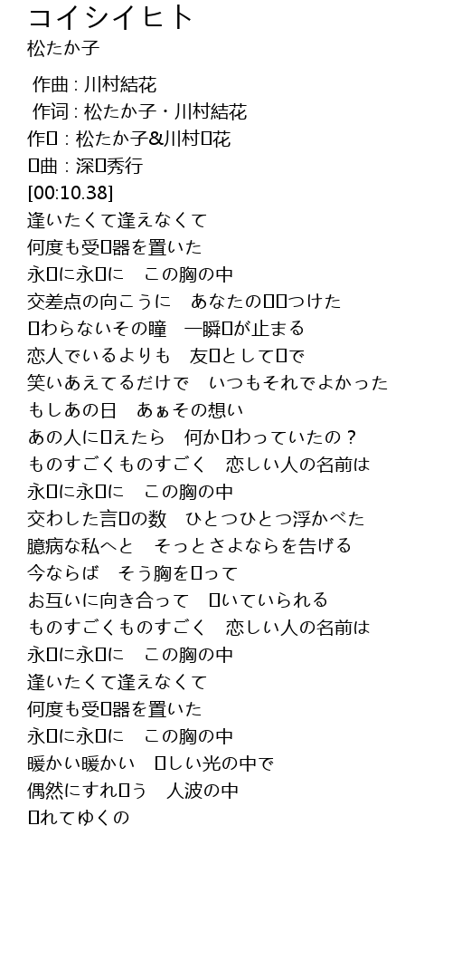 | [01:41.64] | ものすごくものすごく 恋しい人の名前は |