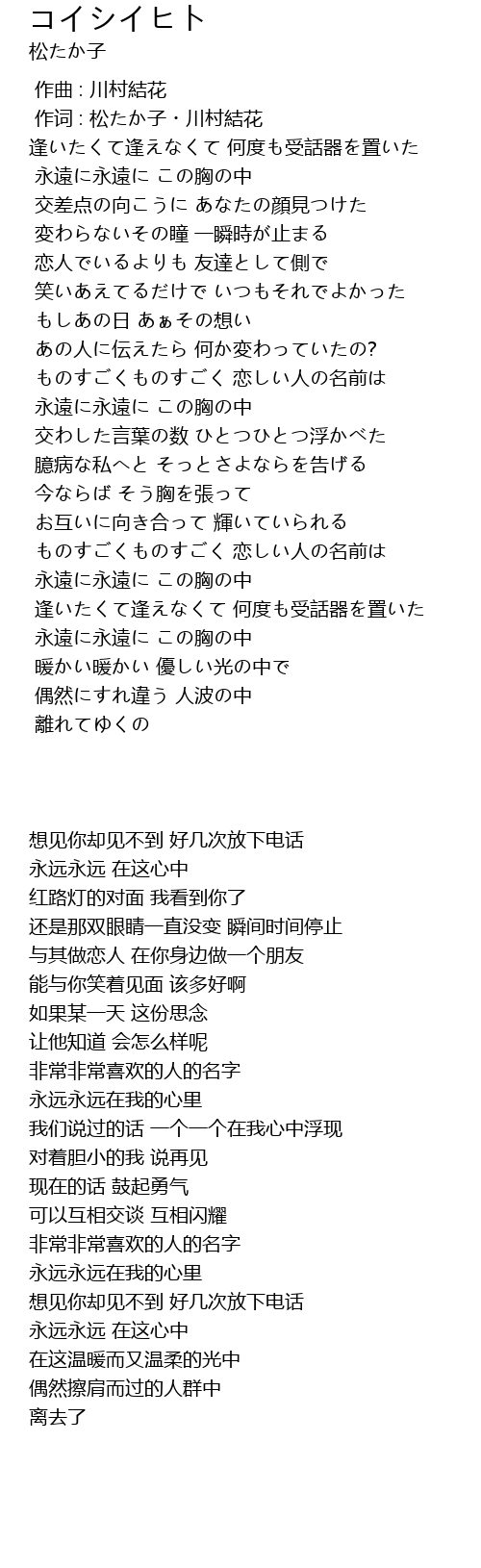 | [02:44.04] | ものすごくものすごく 恋しい人の名前は |