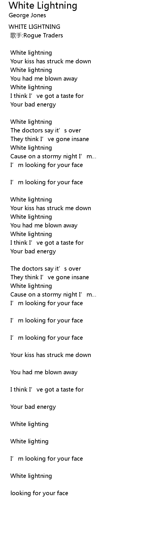 | 歌曲 | White Lightning |