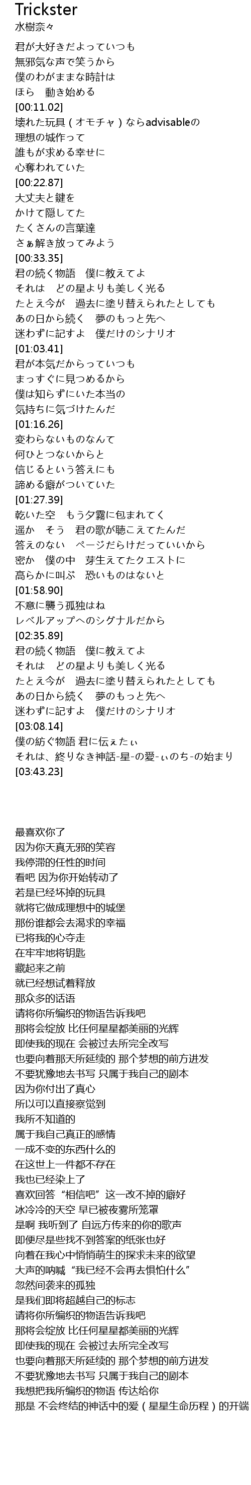 | [02:59.24] | 迷わずに記すよ 僕だけのシナリオ |