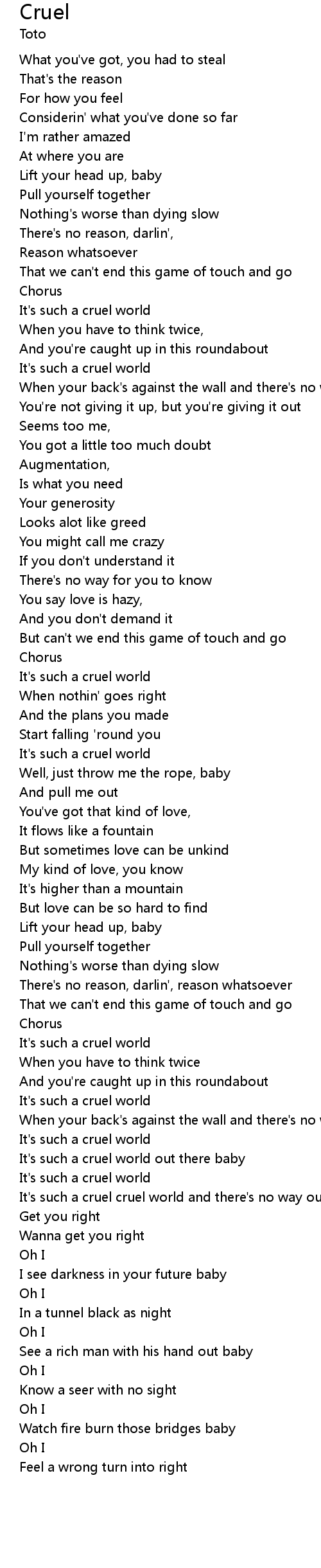 It's such a cruel world out there baby |