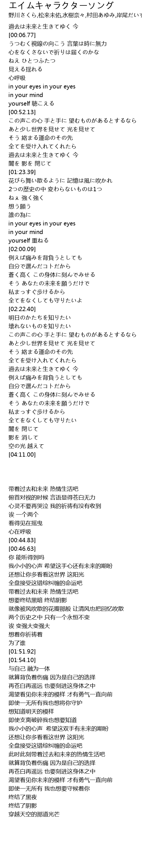 | [03:38.87] | そう あなたの未来を願うだけで 私まっすぐ歩けるから |