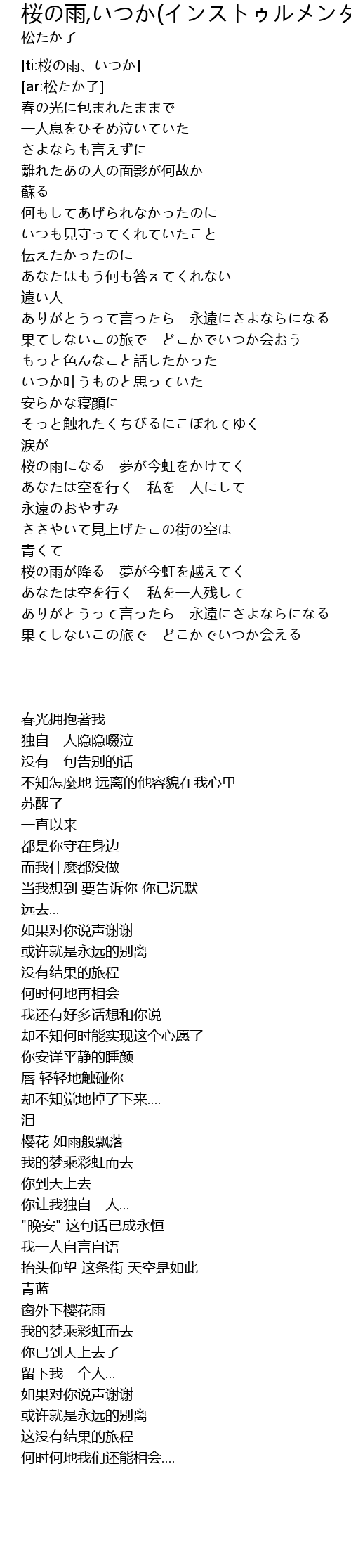 | [03:05.666] | 桜の雨になる 夢が今虹をかけてく |
