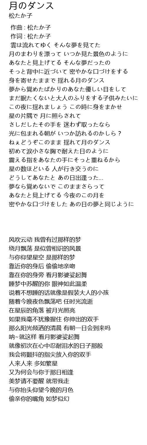 | [02:37.76] | ねぇどうぞこのまま 揺れて月のダンス |