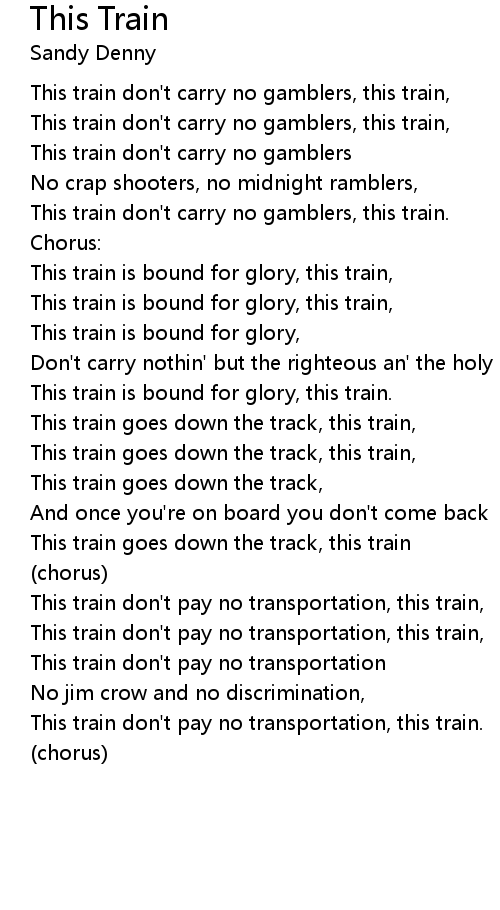 This train is bound for glory, this train. |