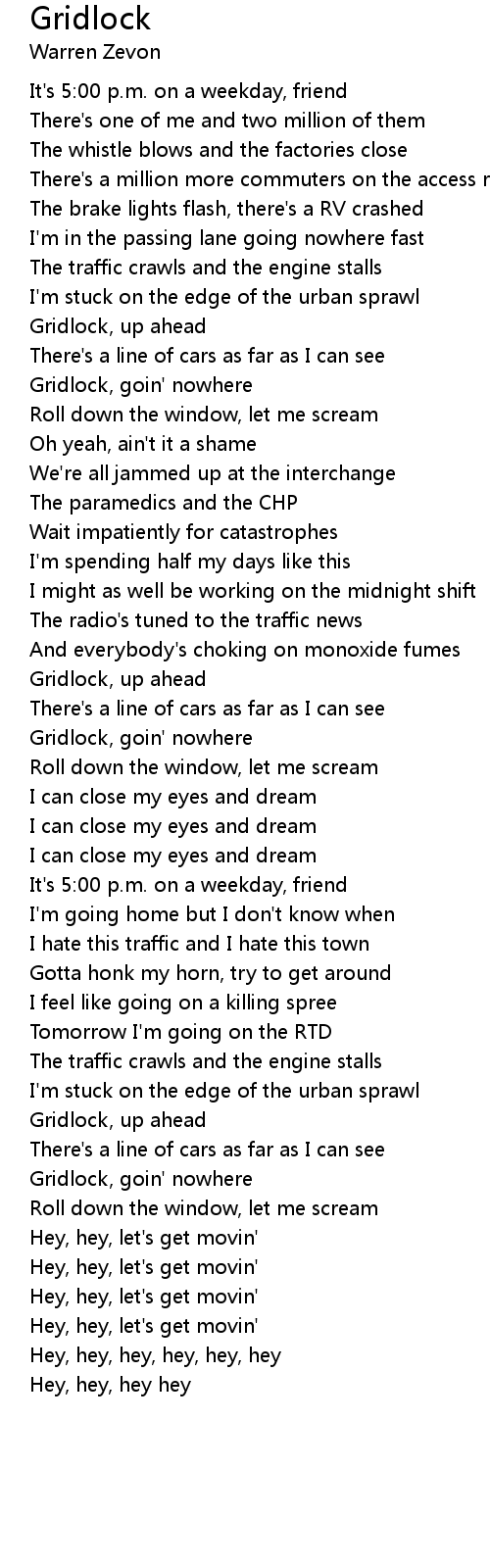 Gridlock, goin' nowhere |