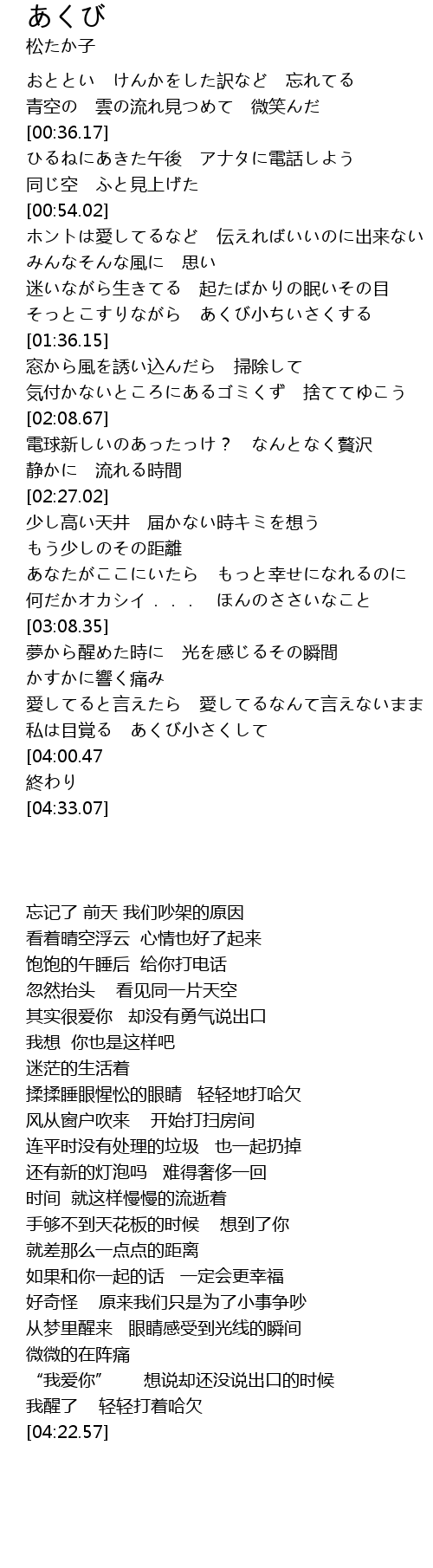 | [00:18.37] | おととい けんかをした訳など 忘れてる |