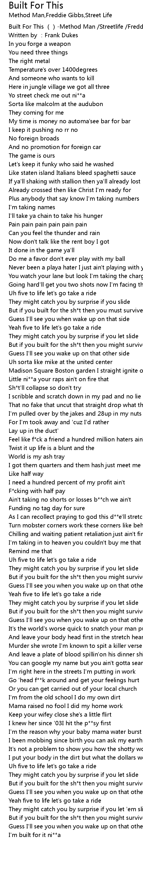 | [00:00.00] | Built For This Method Man Streetlife Freddie Gibbs |