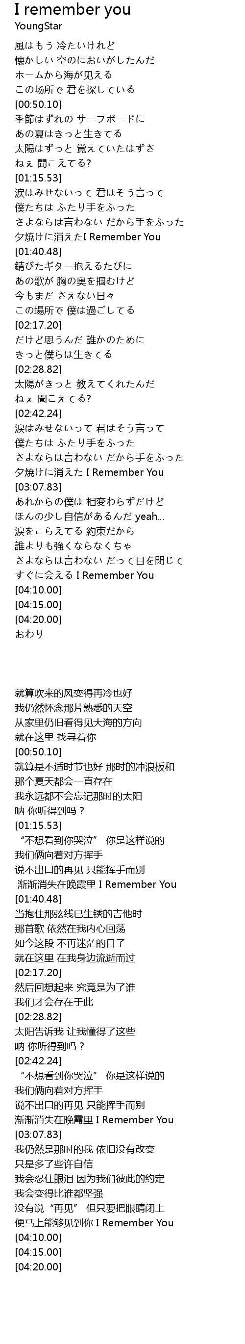 | [03:57.40] | すぐに会える I Remember You |