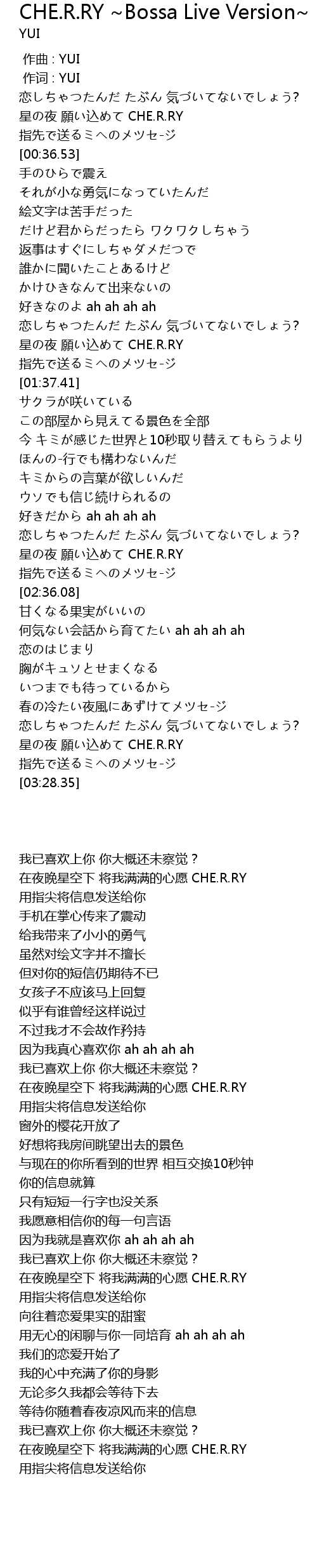 | [03:19.26] | 星の夜 願い込めて CHE.R.RY |