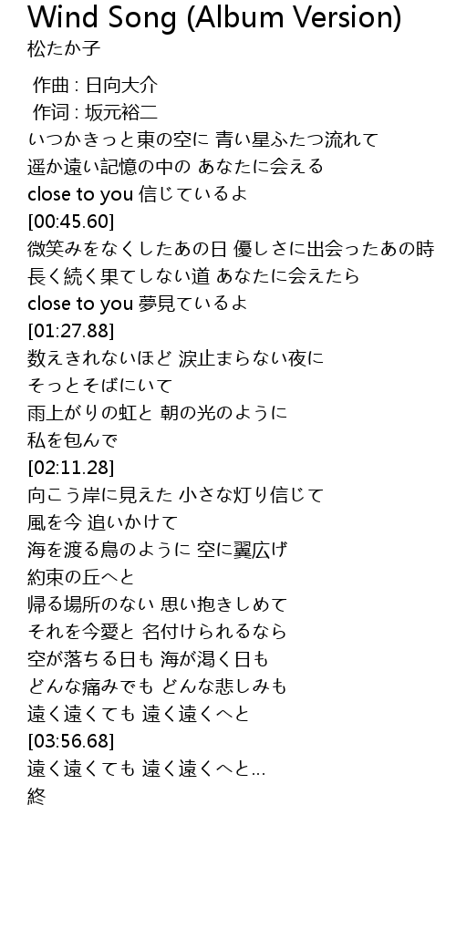 | [04:06.92] | 遠く遠くても 遠く遠くへと… |
