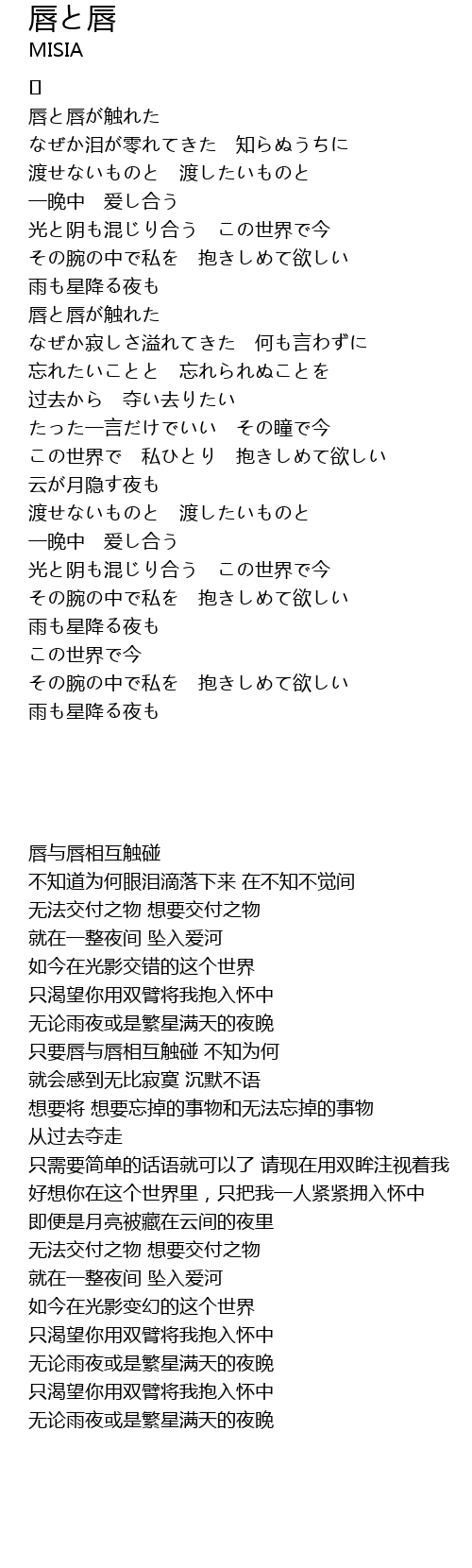 | [00:00.000] | 唇与唇相互触碰 |