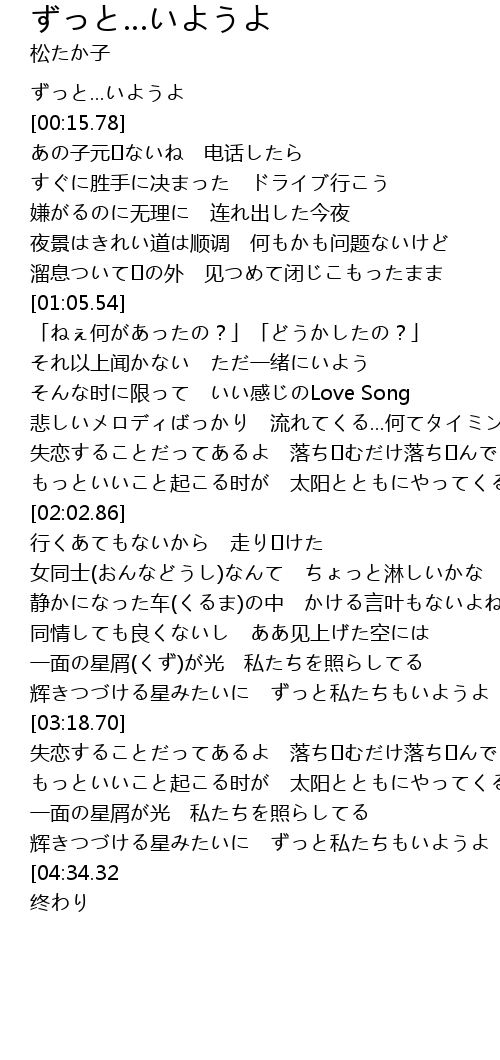 | [04:24.25] | 辉きつづける星みたいに ずっと私たちもいようよ |