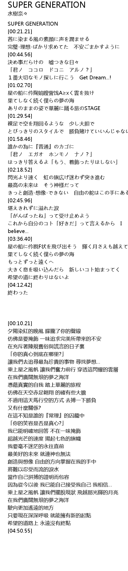 | [00:53.34] | 1番大切なモノ探しに行こう Get Dream...! |