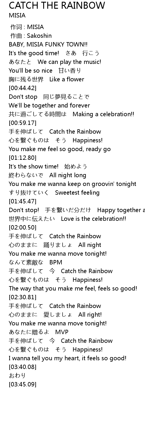 | [03:10.25] | 手を伸ばして Catch the Rainbow |