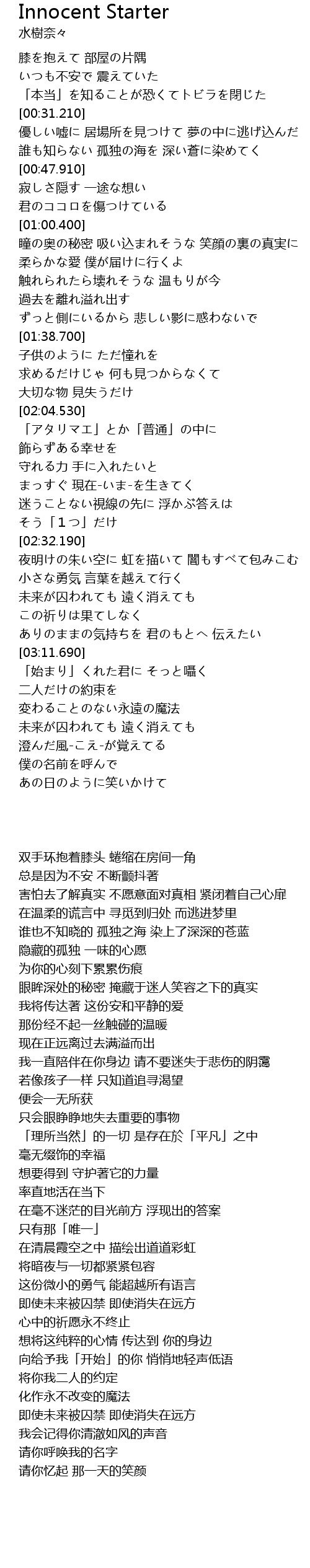 | 歌曲 | Innocent Starter |