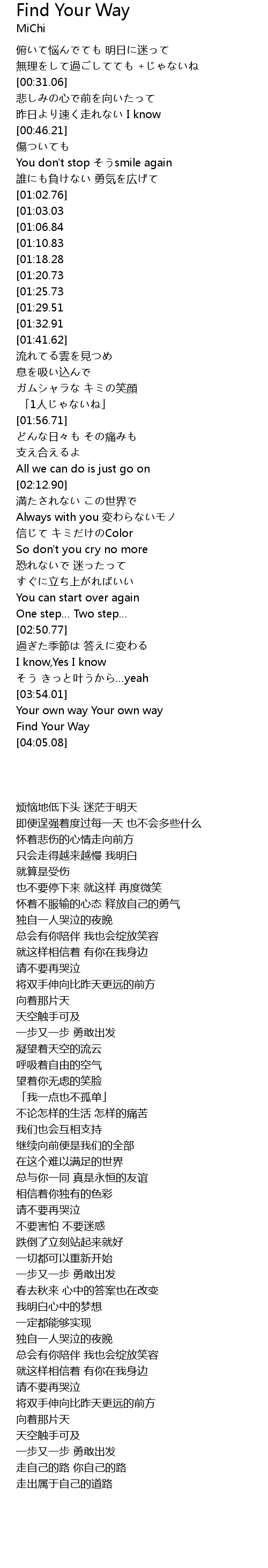| [04:01.38] | Find Your Way |
