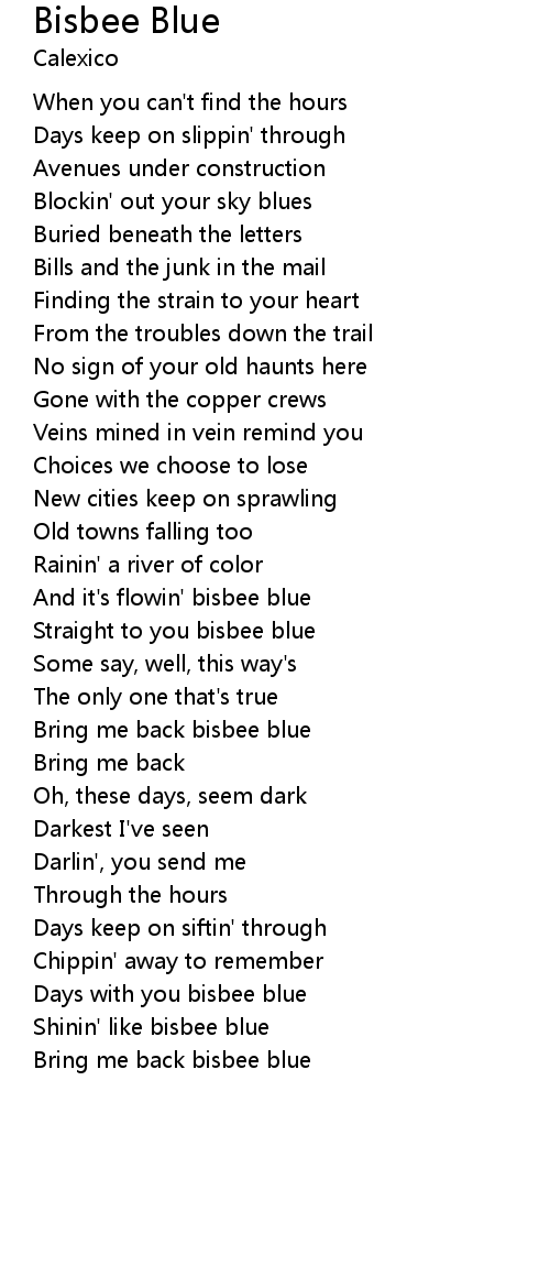 And it's flowin' bisbee blue |