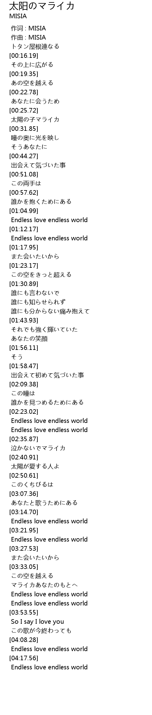 | [03:16.12] | Endless love endless world |