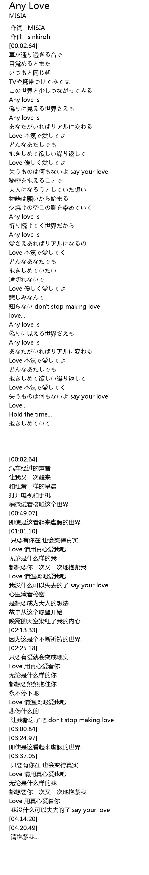 | [00:00.000] | zuò cí : MISIA |