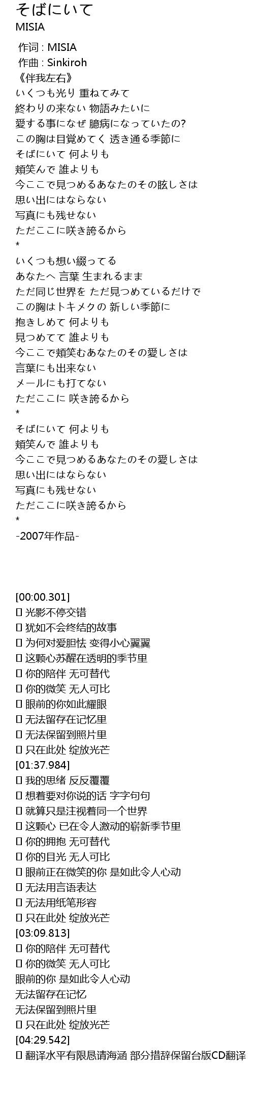 | [03:50.713] | そばにいて 何よりも |