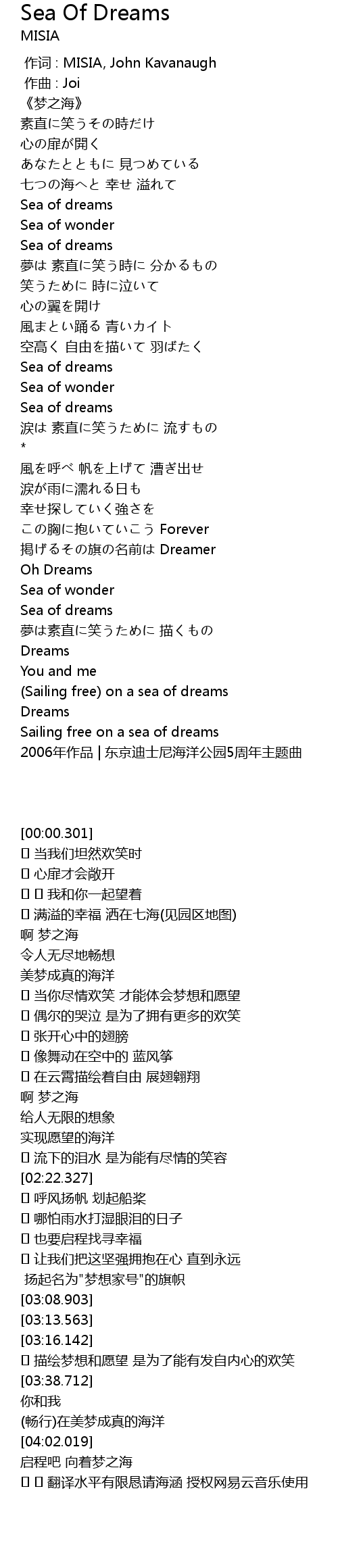 | [03:45.154] | (畅行)在美梦成真的海洋 |