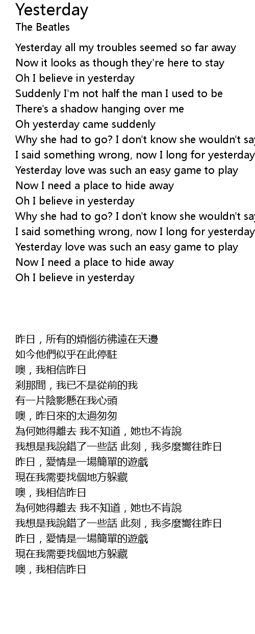 Oh yesterday came suddenly |