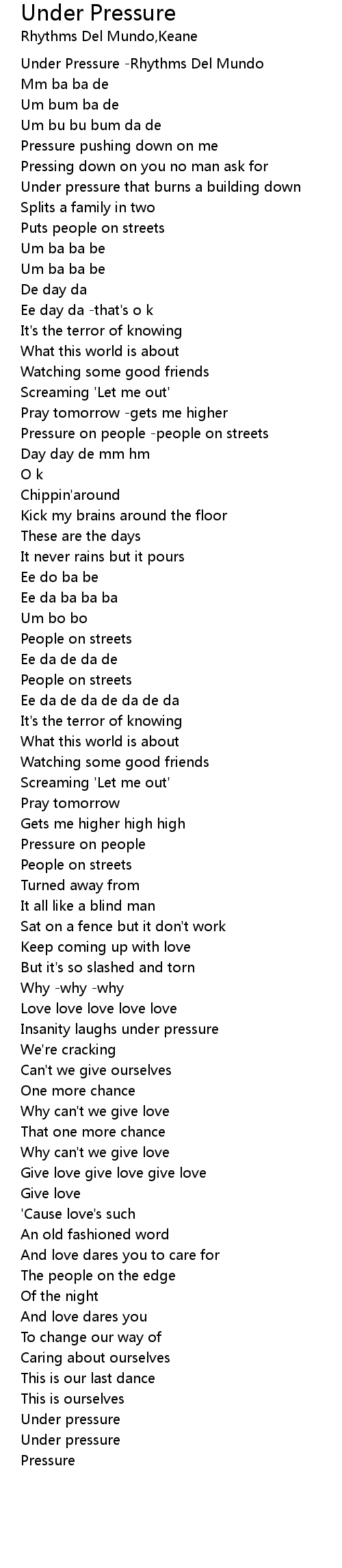 Under Pressure -Rhythms Del Mundo |