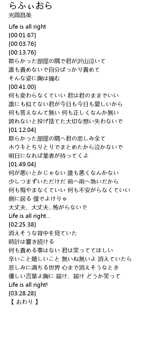 | [00:00.00] | Life is all right |