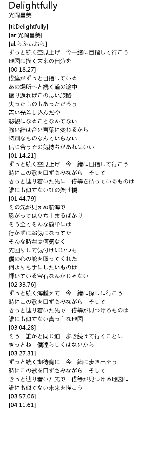 | [01:37.27] | 誰にも似てない虹の架け橋 |