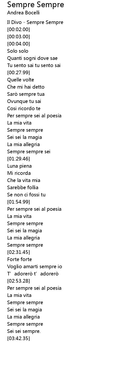 | [00:01.00] | Il Divo - Sempre Sempre |