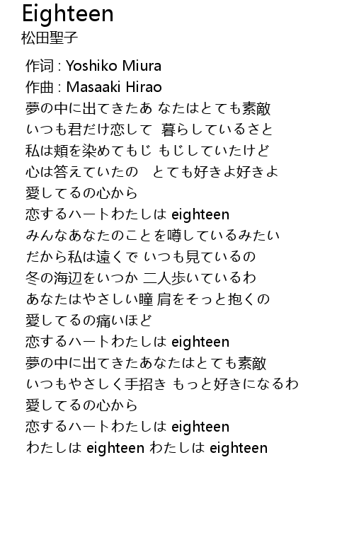 | [03:01.200] | わたしは eighteen わたしは eighteen |