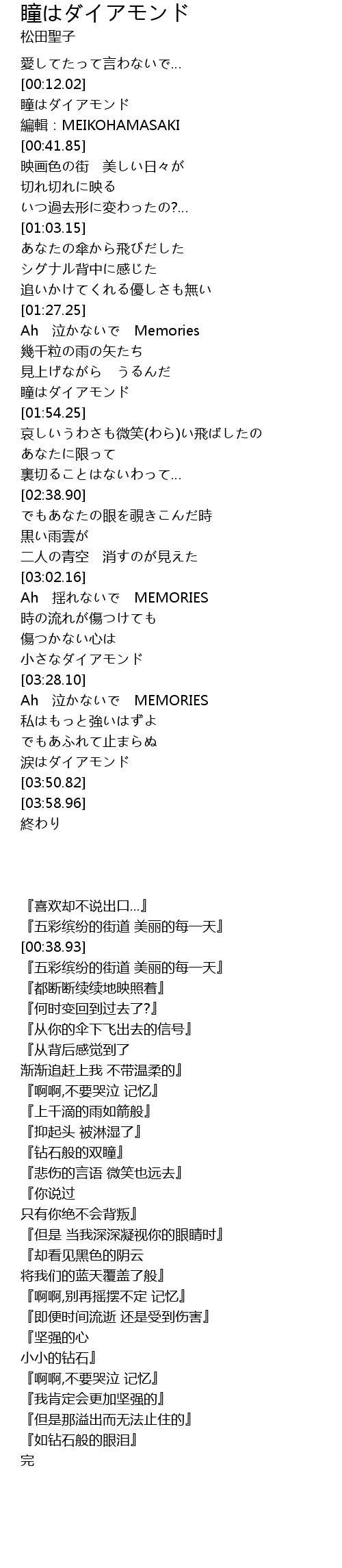 | [03:46.28] | 『如钻石般的眼泪』 |