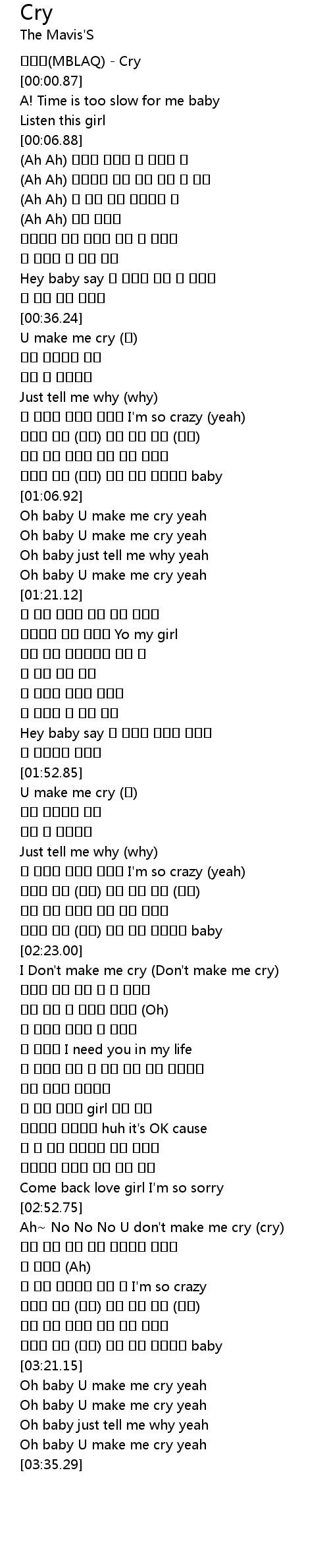 | [03:22.34] | Oh baby U make me cry yeah |