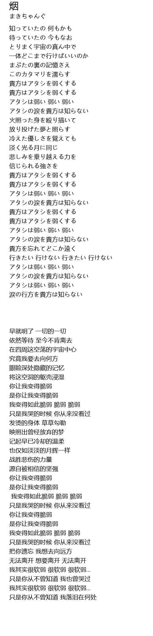 | [02:37.010] | アタシは弱い 弱い 弱い |