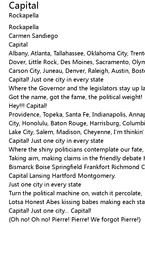 Dover, Little Rock, Des Moines, Sacramento, Olympia, Montpelier, Jackson, |