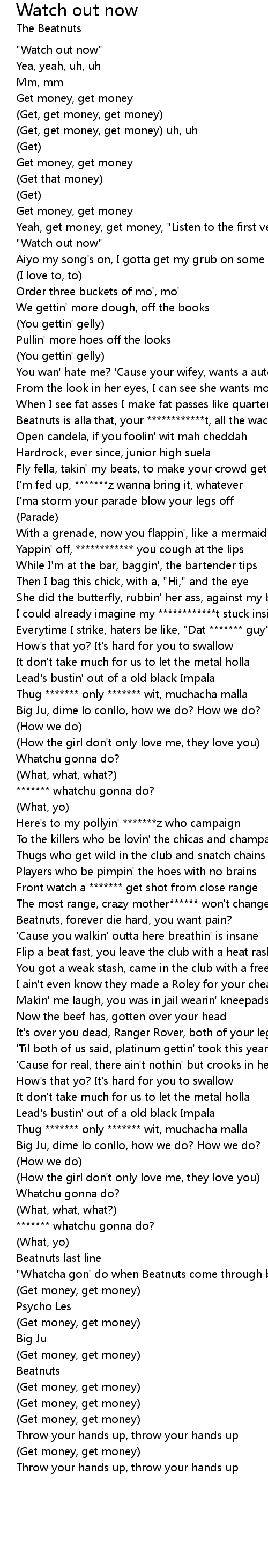 "Whatcha gon' do when Beatnuts come through baby" |