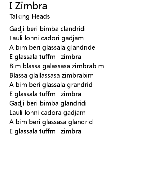 | 歌曲 | I Zimbra |