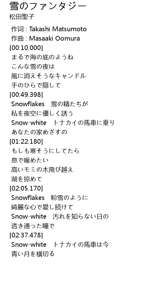 | [02:39.357] | Snow-white トナカイの馬車は今 |
