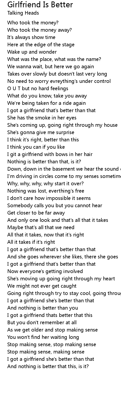I got a girlfriend that's better than that |