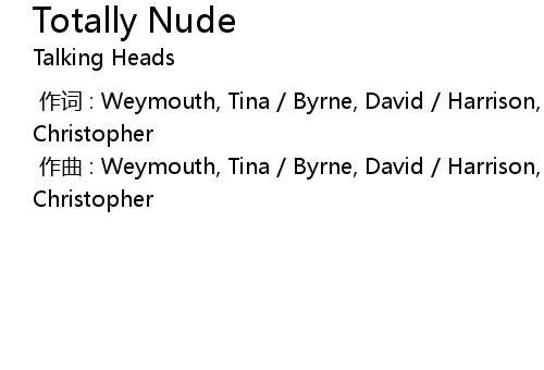 | [00:00.000] | 作曲 : Weymouth, Tina / Byrne, David / Harrison, Jerry / Frantz, Christopher |
