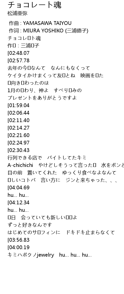 | [00:12.00][02:48.07][04:43.01] | 松浦�弥-チョコレ�ト魂 |