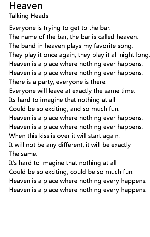 [00:55.90] Heaven is a place where nothing ever happens.