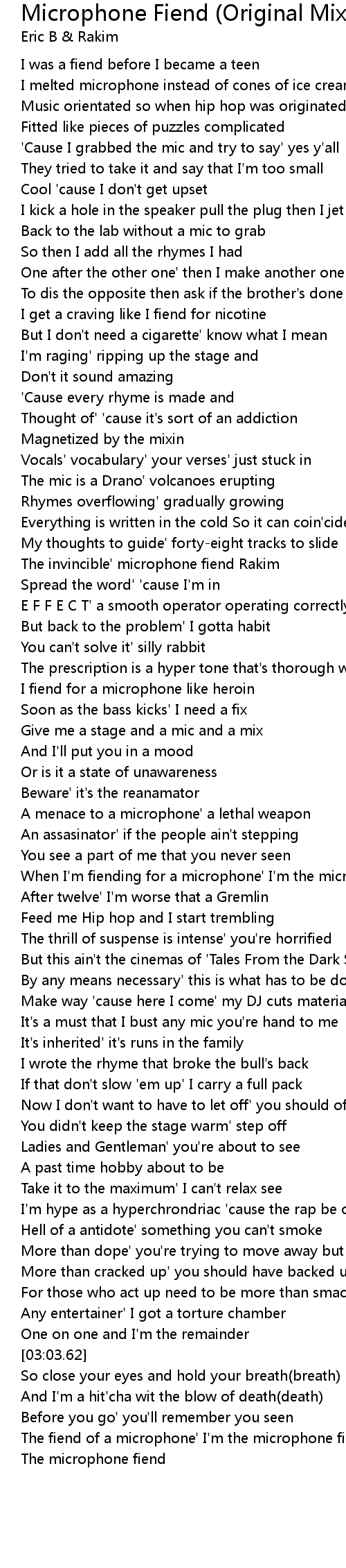 The fiend of a microphone' I'm the microphone fiend |
