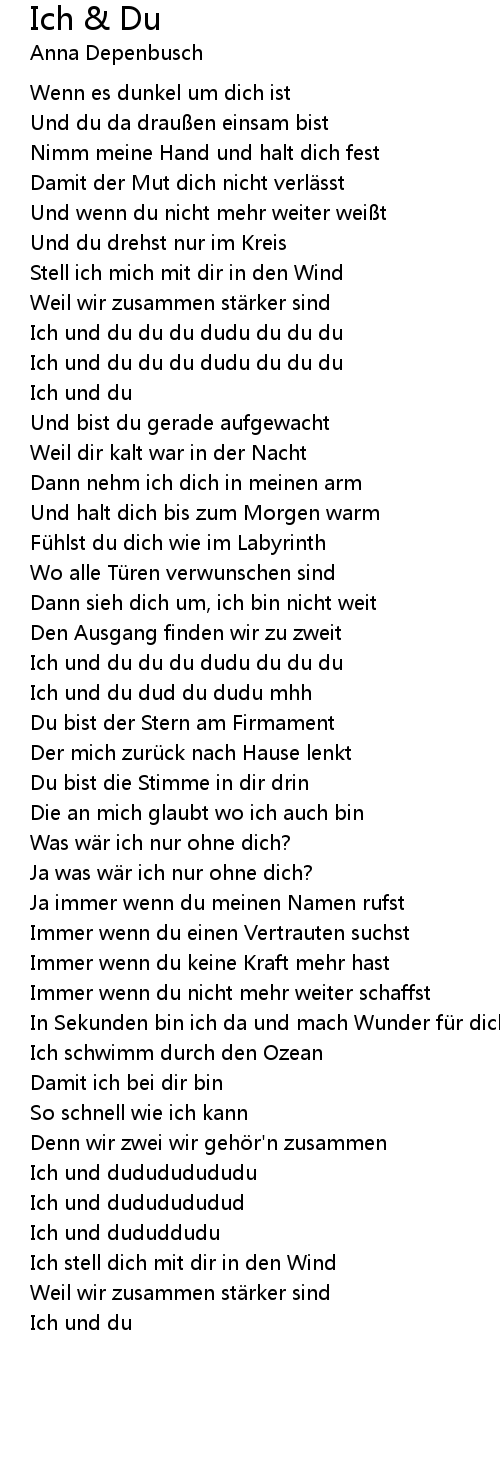 | [01:20.40] | Ich und du dud du dudu mhh |