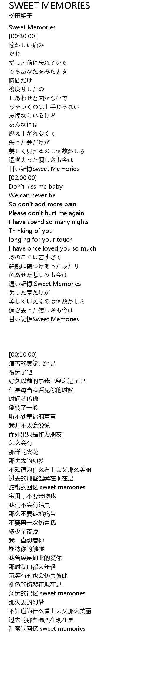 | [00:10.00] | Sweet Memories |