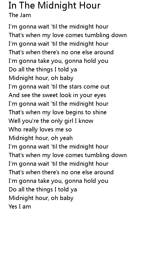 Midnight hour, oh yeah |