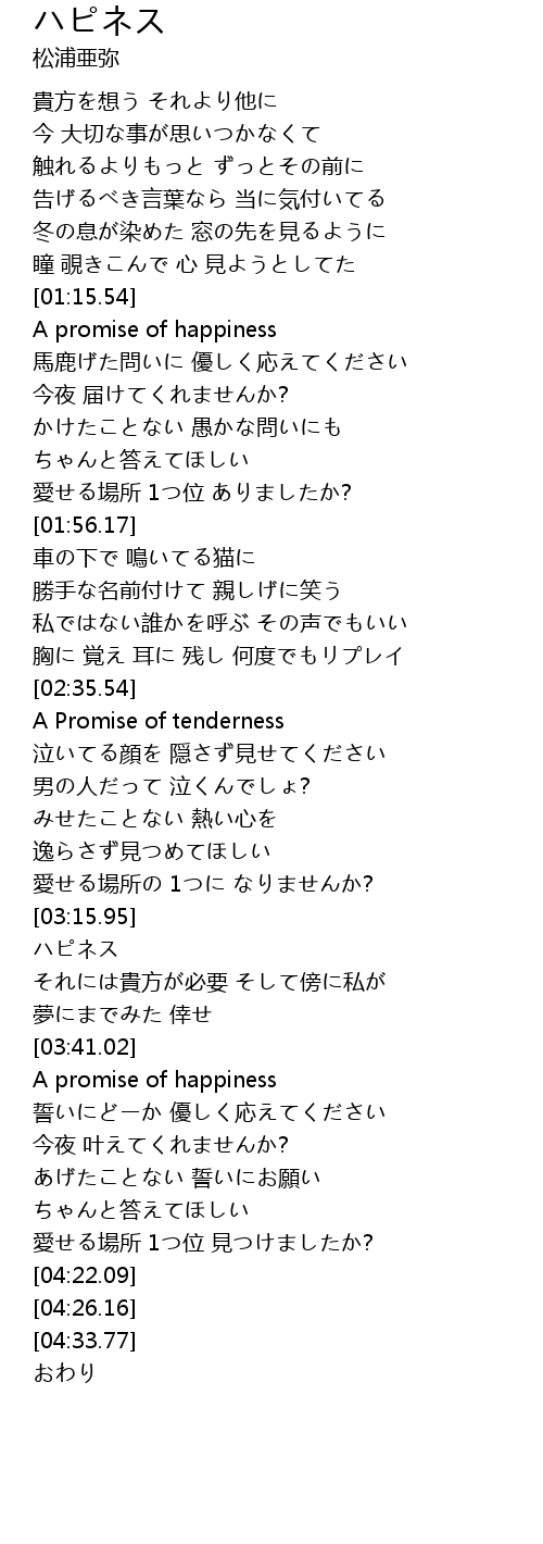 | [01:44.24] | 愛せる場所 1つ位 ありましたか? |