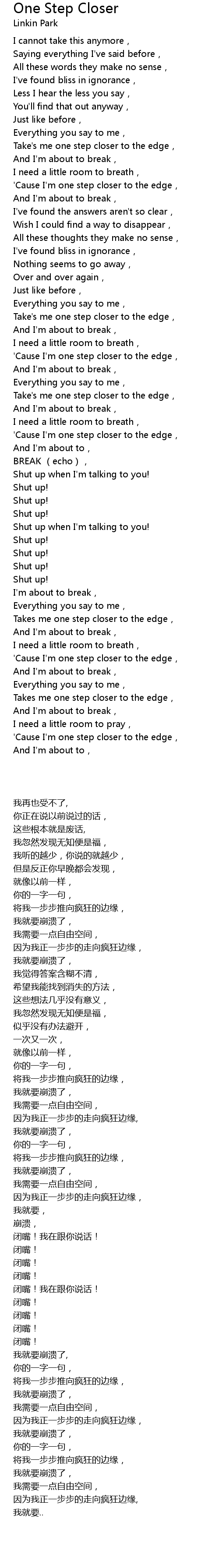 | [00:53.83] | 'Cause I'm one step closer to the edge, |